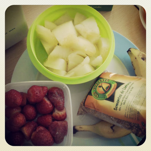 E foi este o batido pré-treino! Melão,morango e banana com leite magro e sementes de linhaça. Excelente pra completar o dia!